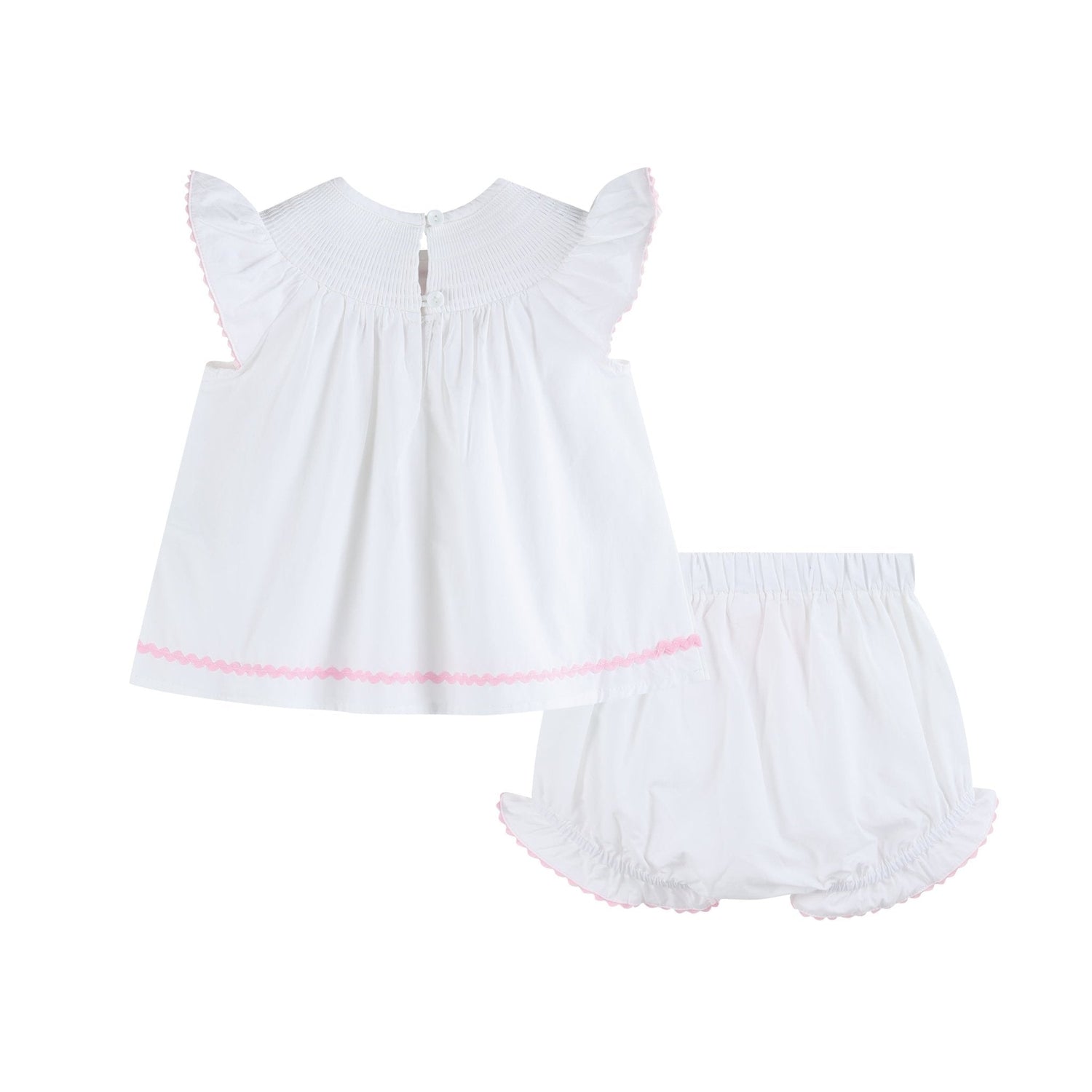 White and Pink Cross Smocked Dress and Bloomer Set