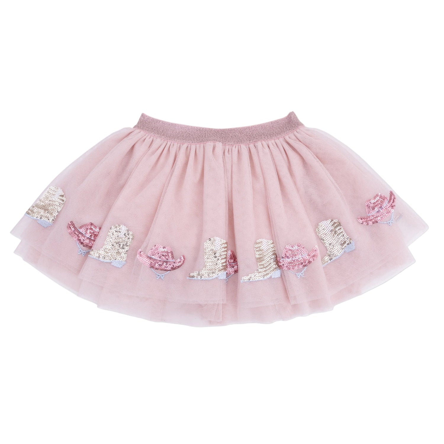 Little cowgirls will love spinning and playing in our Yee Haw Cowgirl Tutu Skirt with Bike Shorts! The soft, flouncy tulle skirt twirls beautifully, while ultra-soft Viscose from Bamboo bike shorts keep little ones comfy and covered. A sparkling waistband and playful sequin cowboy hat and boot appliques add a fun, western-inspired twist, perfect for playdates, parties, or picture-perfect moments.