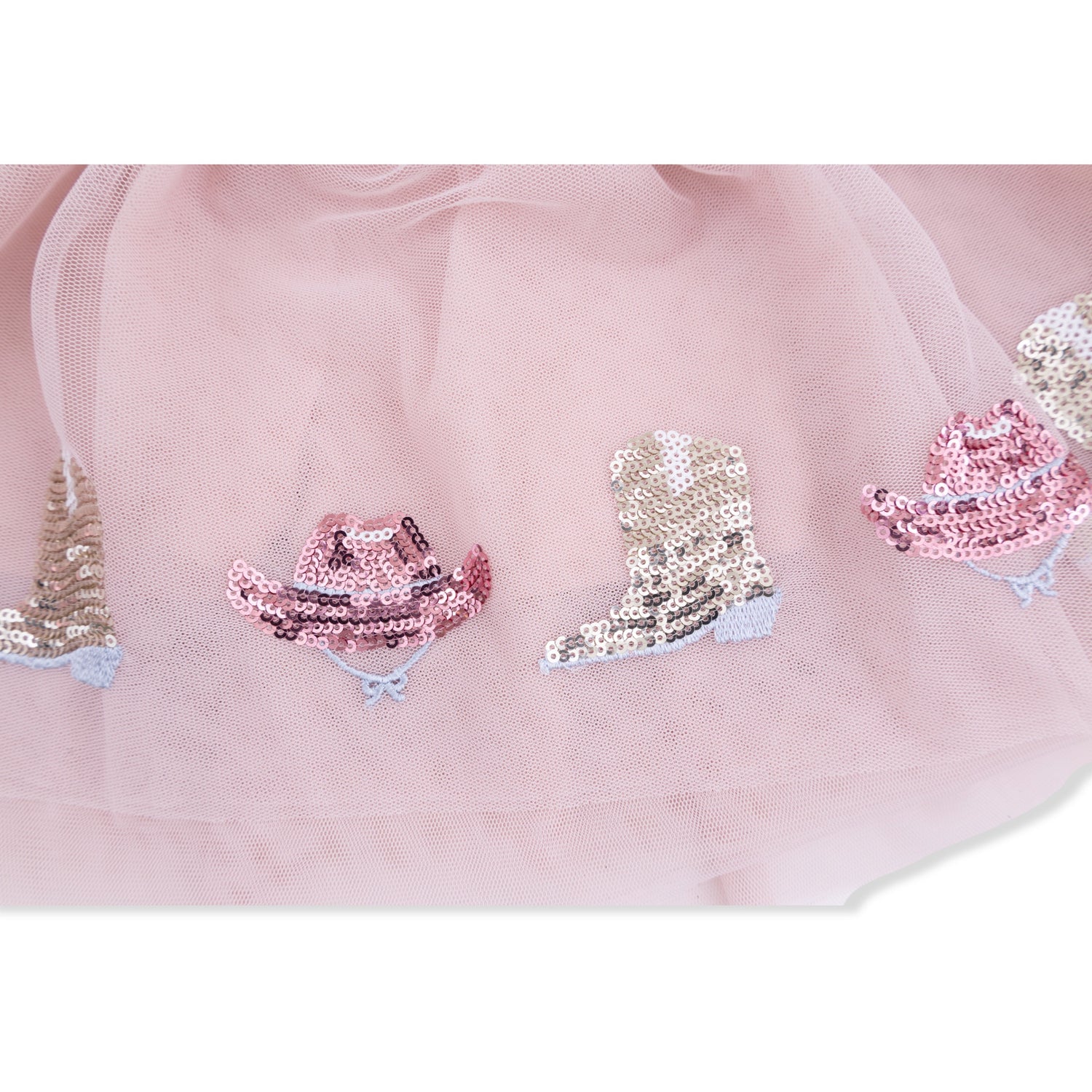 - Sparkle waistband & sequin cowboy appliques: Western charm with playful sparkle